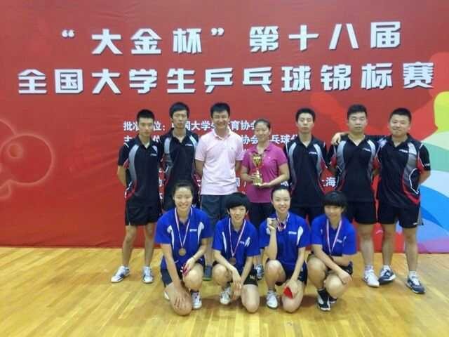 2013年第十八届全国大学生乒乓球锦标赛,于8月22日——28日在山东省潍坊市鲁能乒乓球学校举行。来自全国57所高校代表队,500余名运动员参加。由我校,校乒乓球代表队组成的beat365亚洲体育在线官网队,在beat365亚洲体育在线官网领导以及乒乓球教研室刘丰德主任的悉心指导下,在训练竞赛处唐国丽老师的率领下,由牛剑锋、肖劲翔两位老师带队,经过暑期的刻苦集训,积极应对、克服外界不利条件,在赛场上顽强拼搏,最终取得男子高水平组单打冠军和季军。